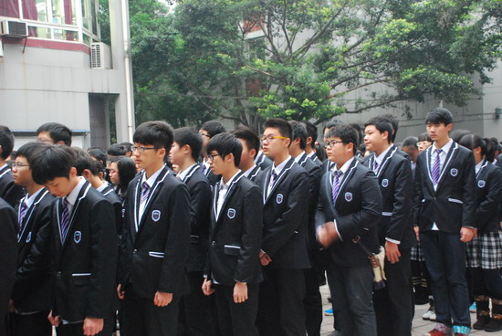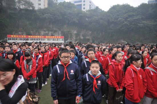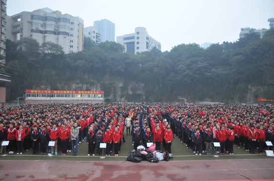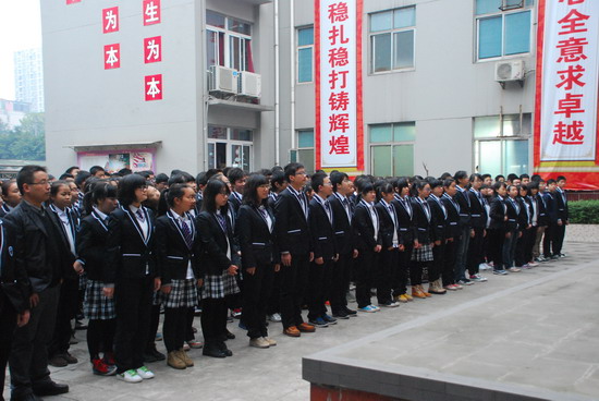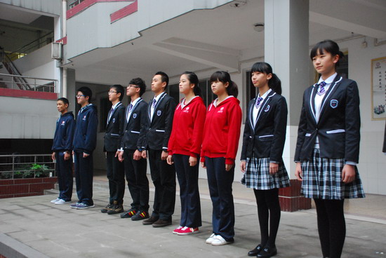 (巴蜀中学网站 记者谢昕和赵霞芬摄影报道)2012年11月19日晨,我校举行升旗仪式,巴蜀中学高、初一、二的学生身着刚放发放的时尚漂亮的校服,参加升旗仪式。
