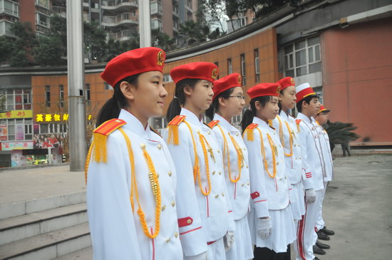(巴蜀网 王锐)11月19日,第十二周星期一。伴着浓浓秋意,早上7点20分许,重庆巴蜀中学的初中三个年级迎来了每周最庄重的时刻——升旗仪式。此次升旗仪式由初2014级负责,学生处李嘉婧副主任主持。