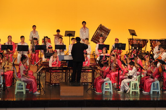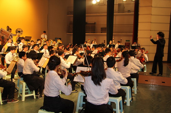 交响乐团的同学们演奏宏大的交响乐曲《伏尔塔瓦河》