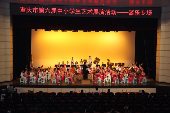在刚刚结束的重庆市第六届艺术展演各项比赛中,我校艺术团发扬团结奋战的精神,捷报频传,喜获丰收。我校交响乐团以一首大气磅礴的《伏尔塔瓦河》获器乐类决赛一等奖第二名,并受到评委的一致好评,舞蹈团以一支唯美的古典舞《咏荷》战胜众多高水平舞蹈队,也摘得舞蹈类决赛一等奖第三名,同时我校民乐团与少年宫合作的交响民乐《乔家大院》,弦乐四重奏《如歌的行板》也一举夺得一等奖。其中管弦乐团及舞蹈团两支团队的录像已报送国家教育部参评。此前于今年6月结束的声乐专场我校在参加决赛的25支合唱队中独树一帜,也取得了决赛一等奖第二名的佳绩。在此对潜心训练、为校争光的全体艺术团师生表示热烈的祝贺和衷心的感谢,愿他们再接再厉,再创佳绩。