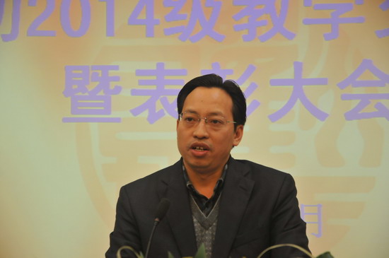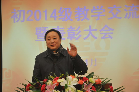 最后,夏义勇校长助理讲了话,他就初二年级工作讲了三点意见:一是抓好学生的学业成绩,他以这次半期考试为样本,进行了本年级学生的实力数据的相对分析,指出了年级面临的严峻形势,需要全年级教师想方设法,挖掘学生学习潜能和教学潜能,度过这个危机;二是向大家介绍了归因理论与教育教学的关系,对教师指导学生的学习和分析自己的教育教学成绩做了指导;三是讲了关于师资队伍建设问题,传达了学校的重要举措和年级的相关思考。夏校助热情号召大家:“全年级团结起来,挖潜度危,不负家长、学校和国家的重托,全面完成初2014级的教育教学任务,成就我们的教育人生。”