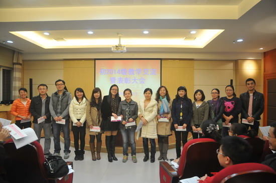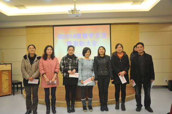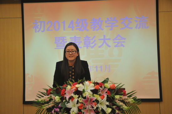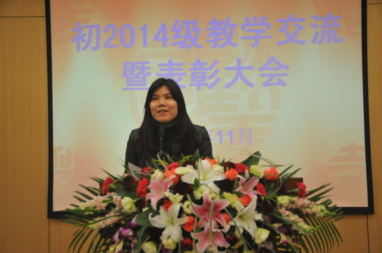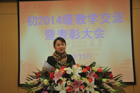 (巴蜀网 崔琴)11月22日,初2014级在校本部行政楼三楼会议室召开了半期教学交流暨表彰大会。巴蜀中学党委书记张勇、鲁能巴蜀中学校长助理夏义勇、党总支书记付英、教务处副主任张升、学生处副主任李嘉婧、年级主任曲思源、许靖及初2014级全体教师参加了这次大会。大会由许靖主持。