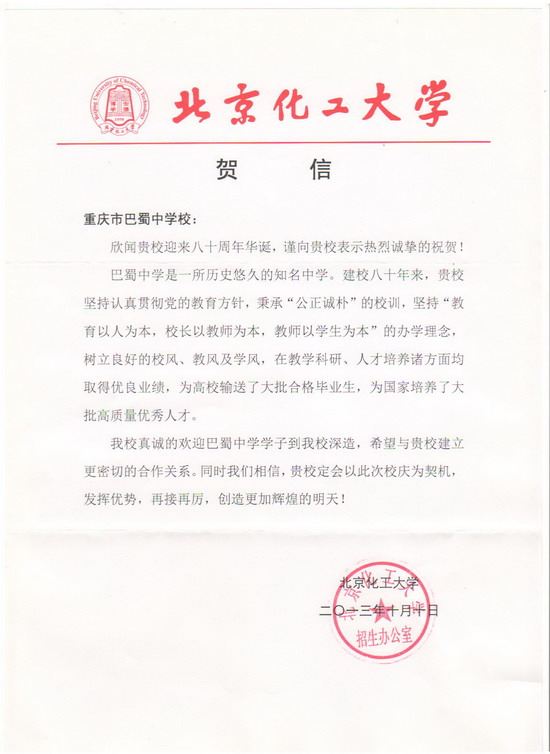 重庆市巴蜀中学校 办公室电话:023-63002371 招生咨询电话:023-63002629 学校地址:重庆市渝中区北区路51号 邮编:400013