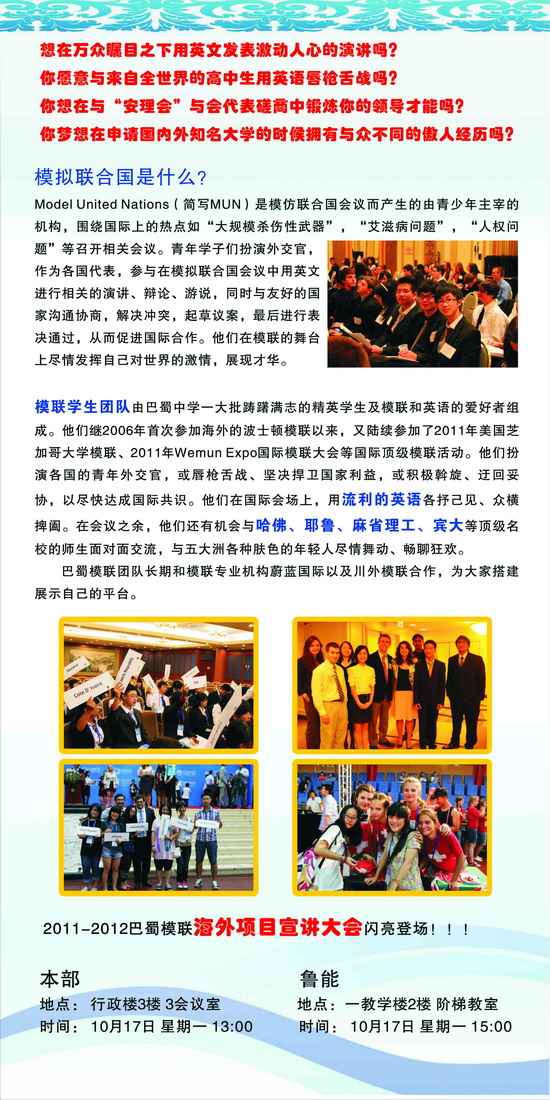巴蜀模联海外项目宣讲大会即将举行