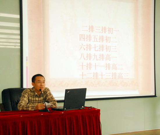 为了加强学校教研室建设,更好推动师资队伍建设,提高教育教学科研质量,2011年10月10日至10月14日,我校语文、数学、英语、物理、化学、生物、政治、历史、地理、体育、信息、音乐、体育、美术等教研室先后在本部行政楼三楼会议室、鲁能学术报告厅、鲁能一教三楼阶梯教室等举行了本年度教研室主任述职大会,各教研室全体成员参加了会议。