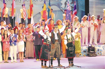 在精彩亮相环节,48个代表队的144名选手一一登台亮相。他们或穿着自己民族独特的服饰,或跳起各自国家热情洋溢的舞蹈,而最让观众们惊喜的,是从他们口中说出的一句句纯正而流利的汉语。选手们时不时冒出的一两句“我们可不是来‘打酱油’的哦,请为我们加油”等网络语言,还有地道的重庆方言“扎起”、“巴适”,让现场观众们不由为他们对汉语的理解运用能力大为赞赏。