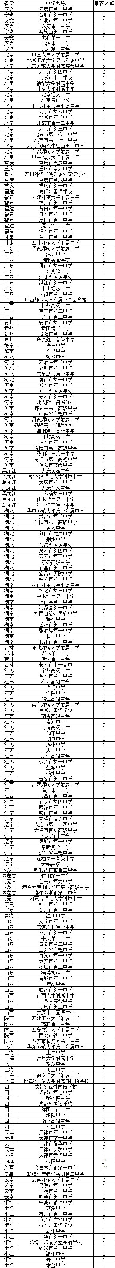 (注:以推荐名额多少为序,推荐名额相同时以中学名称音序为序)