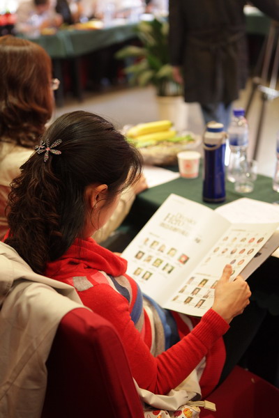 校友认真阅读资料,了解学校现状