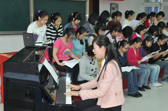 会议由甘元平老师主持。在我校音乐教研室主任丁颖老师的指挥下,一曲苏联歌曲《山楂树》合唱拉开本次研讨会序幕。张勇书记对全体音乐教师提出了自己宝贵的意见和建议,他认为音乐是培养情操,提高品位,丰富生活的一种重要形式。学校音乐课在提高从学生综合素质,挖掘和培养学生特长有着重要的作用和意义。