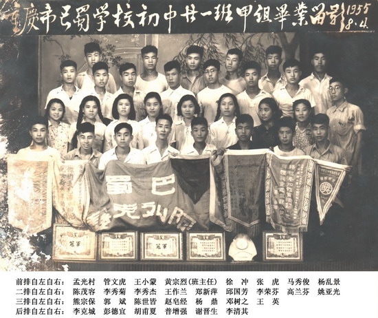 初21甲班(1952年秋—1955年) 班主任:罗光斌、黄宗烈