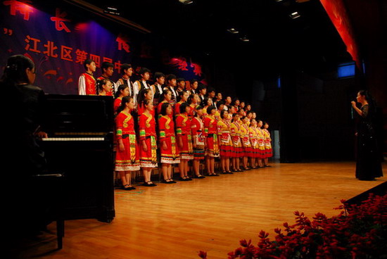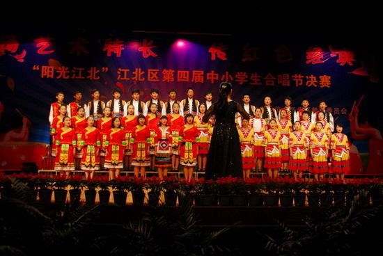 我校合唱团在江北区第四届中小学生合唱节29支参赛队激烈决赛中勇夺第一名。