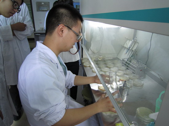 最近,这些同学结合教材上的相关实验指导,对进一步“探究酵母菌种群数量的动态变化”的实验产生了浓厚的兴趣。他们很想知道酵母菌究竟是什么样的生物,为什么它能够酿出美味的酒来,哪些因素会影响它的生长和繁殖。但由于条件的限制,目前我校生物实验室还无法完成。为了满足学生的求知欲,培养学生科学实验操作技能,周兴成、季鑫、何鑫三位老师立即联系了西南大学生科院院长邓洪平和微生物学徐耀波老师。他们很高兴能为中学生开放实验室并进行实验指导。
