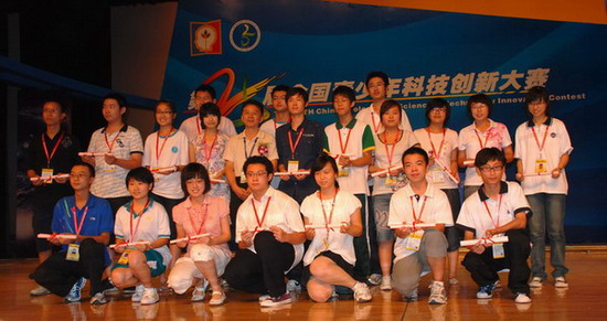 暑期在广州举行的第25届全国青少年科技创新大赛中,我校高2011级王睿怡和朱东同学顽强拼搏,沉着应对,终于为我校在该项大赛中实现了零的突破,分获得二、三等奖的好成绩(重庆市最好成绩),其中王睿怡另获得低碳科技创新专项奖并获得保送和高考加分资格。