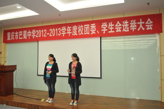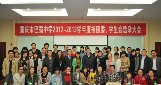 (巴蜀网 闫娟)2012年10月11日下午5点,我校2012——2013学年度新一届校团委、学生会学生干部竞选大会如期举行。重庆市巴蜀中学党委书记张勇、副校长吴国慧、校长助理汪红霞、教务处主任张全学、副主任伍平伟、沈士兵、舒小农,学生处副主任高陶,校团委书记唐虢等出席了大会。大会评委由鲁能校区各年级主任和年级团总支书记组成,会议由高2015级龙湖校区团总支书记闫娟老师主持。