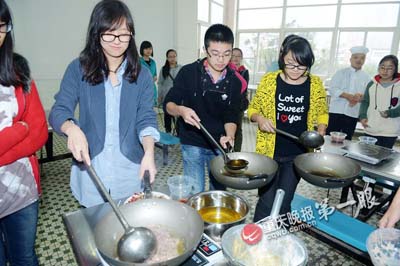 虽然学生们都喜欢学烹饪,但经常在家做菜的人并不多,只有12%的学生表示会常常自己动手做菜。他们认为,学烹饪最大障碍是“父母不让做”(44%),其他原因有“住校没有条件做”(17%)、“学习太紧没有时间做”(14%)等,表示完全没有兴趣学烹饪的学生只有19%。
