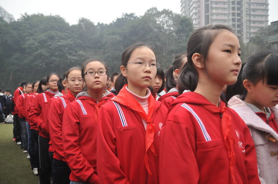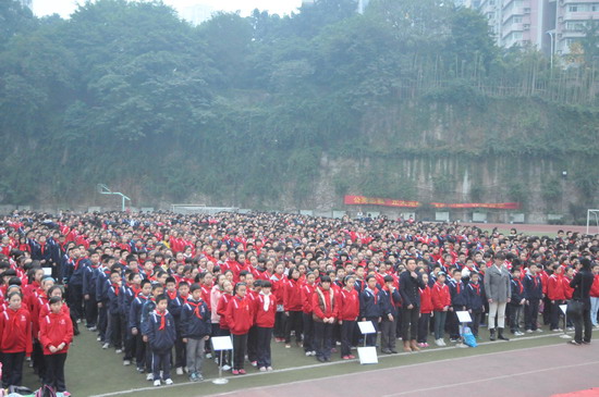 (巴蜀网 王锐)11月19日,第十二周星期一。伴着浓浓秋意,早上7点20分许,重庆巴蜀中学的初中三个年级迎来了每周最庄重的时刻——升旗仪式。此次升旗仪式由初2014级负责,学生处李嘉婧副主任主持。