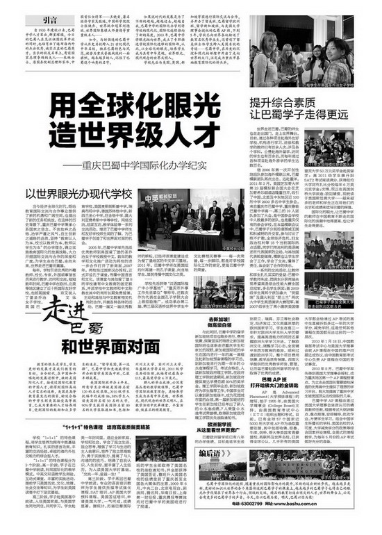 重庆晨报——巴蜀中学国际化办学记实