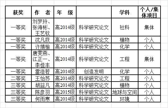 我校学生在第28届重庆市青少年科技创新大赛中获五个一等奖和四个专项奖。特此向获奖同学和付出辛勤劳动的指导教师张荣庆老师表示祝贺!