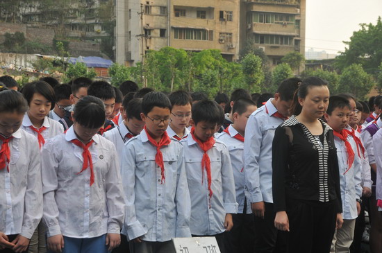 (巴蜀网 胡勤涌) 4月20日,四川雅安发生7.0级地震,举国悲痛。4月22日早上7点30分,重庆市巴蜀中学在运动场上举行升旗仪式并为雅安地震遇难同胞默哀。校党委书记、副校长张勇、校党委副书记吕之生、副校长费春斌、校长助理邓飞、汪红霞、鲁能巴蜀中学党总支书记付英等领导和全体师生参加了此次升旗仪式,升旗仪式由教务处副主任彭小珊主持。