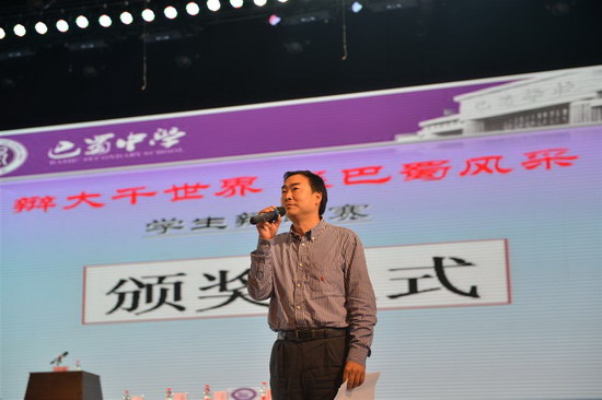 (巴蜀网 王燕)2013年4月22日16:20,巴蜀中学高2015级“辩大千世界,展巴蜀风采”学生辩论赛总决赛在鲁能巴蜀中学大礼堂举行。经过初赛、复赛、半决赛的激烈争夺,最终,高2015级1班学生辩论队、16班学生辩论队脱颖而出,闯入总决赛。正方1班辩手和反方16班辩手就“通盘考虑,中国的崛起是否有利于美国的利益”这一辩题掀起了一场激烈的舌上风暴。此次辩论赛非常荣幸地邀请到了重庆市鲁能巴蜀中学校长唐良沐、巴蜀中学校长助理邓飞、办公室主任陈学智、国际部副主任郑琪、教务处副主任舒小农、高2015级年级主任李潇珂、郑元等。本次比赛的评委团也相当豪华,由巴蜀中学语文教研室主任田贵远老师、高2015级刘玲老师、曾艳老师、宋杰老师、赵成梁老师组成,阵容强大,不愧为一场华丽的盛典。