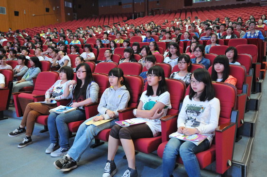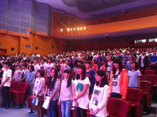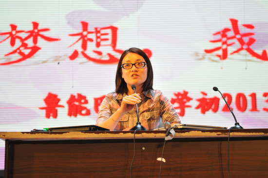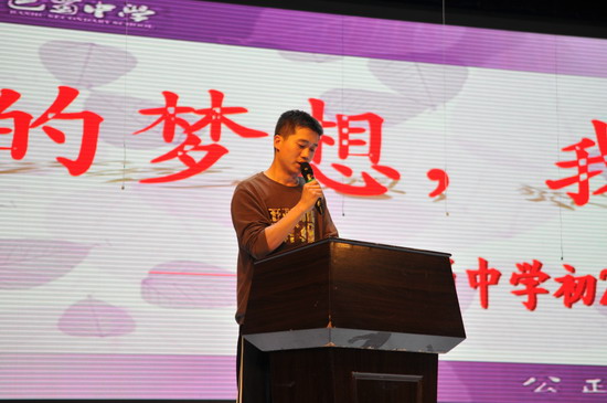 (巴蜀网 石瑞)4月25日晚上19点40,“我的梦想,我的路”主题团课在鲁能大礼堂举行。我校团委书记唐虢、初2013级年级主任白羽出席了本次大会。大会由初2013级团总支书记石瑞主持,年级主任白羽主讲,共有450余名新团员参加了本次大会。大会在团歌《光荣啊,中国共青团》中开始。