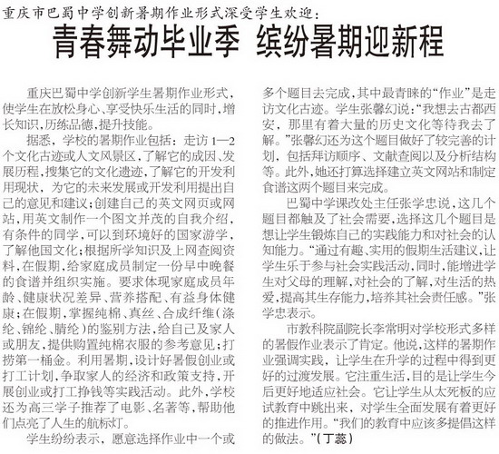 重庆市巴蜀中学校 办公室电话:023-63002371 招生咨询电话:023-63002629 学校地址:重庆市渝中区北区路51号 邮编:400013