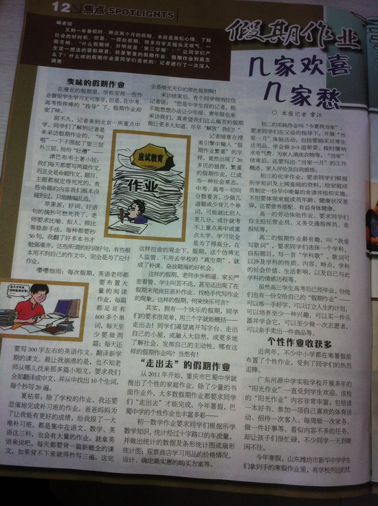 《中国中学生报》报道巴蜀假期作业