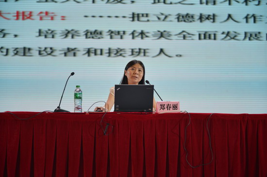 两次获得重庆市教委“巾帼建功之星”的高2015级班主任郑春丽老师在大会上作了题为“立德树人,创建优秀班集体”的经验交流发言。郑老师联系自身工作经历,用生动的案例谈了创建优秀班集体的体会,特别是郑老师用“八心”创建优秀班集体的做法令老师们获益匪浅。