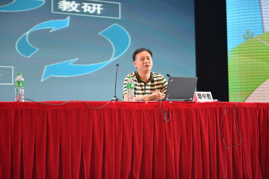 重庆市中学语文研究员、学校教科处谭中胜主任在大会上就班主任如何进行德育科研进行了具体的指导。