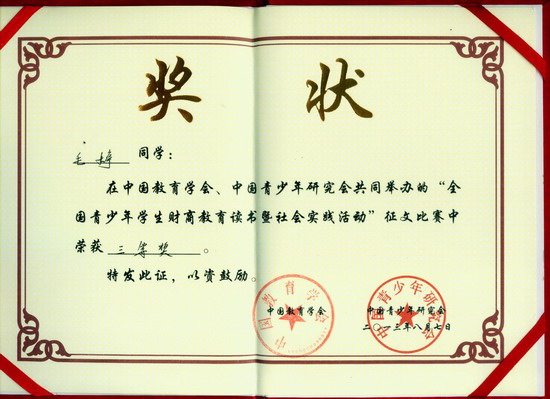 (巴蜀网 胡勤涌)2013年8月6日到9日,由中国教育学会、中国青少年研究会共同举办的首届全国青少年学生财商教育读书暨社会实践活动成果发表会及“财智少年夏令营”活动在北京举行,来自北京、重庆、广东、江苏、河北、四川等财商教育实践基地近百名学生参加活动。我校由夏义勇助理、胡勤涌老师带队参加。在此次活动中,我校被授予“优秀组织奖”, 我校获奖人数和等级均居全国第一位,我校成为成果发布会的主角,到会各校纷纷向我校“取经”,《中国教育报》对吴昊哲进行了报道。
