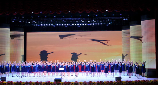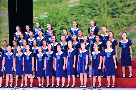伴随着《充满希望的歌》的悠扬旋律,合唱团的小女生们缓缓从礼堂侧道翩翩走上舞台。接下来《铃兰》《青春的足音》《乘着歌声的翅膀》《库斯克邮车》《摘菜调》时而欢快轻盈,而是幽深绵渺,既有民族的瑰宝,又有国外的名曲。《正对花》《重整河山待后生》《五彩缤纷的大地》等歌曲更是雄浑激荡、铿锵豪迈,将晚会气氛推向高潮。初2016级的新同学们被巴蜀中学女声合唱团的歌声深深的吸引,不时爆发雷鸣般的掌声。新同学们为刚刚跨入名校殿堂就受到浓郁的艺术氛围的熏陶而感到由衷的骄傲和无比的自豪。