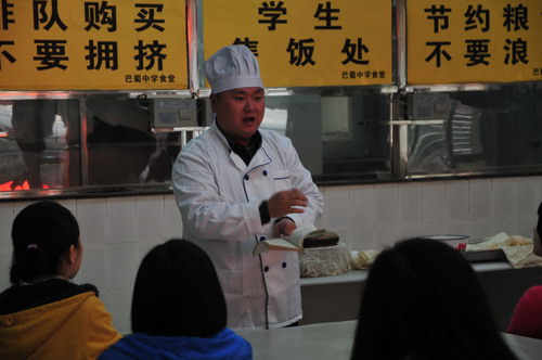 学校食堂厨师长聂飞师傅指导学生《烹饪》课程