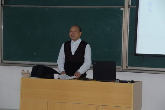刘教授于26日下午抵达重庆鲁能巴蜀中学,同重庆前教科文卫主任、现重庆中国传统文化研究会会长叶贵本先生及巴蜀中学唐良沐、欧健、王国华等校领导进行深度交流。27日上午,刘教授在鲁能巴蜀中学1301教室给本校高2010级22班学生和巴蜀中学的120余名语文教师教授《简笔与繁笔》,时间为两课时。课后,给老师们作了《与时俱进,深化课改》的专题报告。