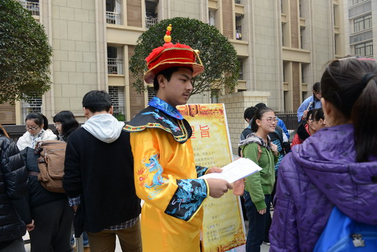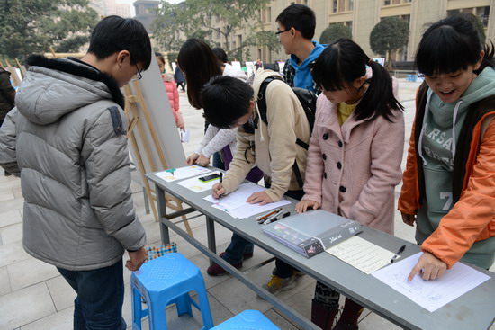 (巴蜀网  胡婉青  李林)乘着艺术节的东风,12月4日,我校在黄花园校区举行了社团招新活动。在活动上,《巴蜀风》文学社、爱心社、广播站等20余个社团尽展社团魅力。