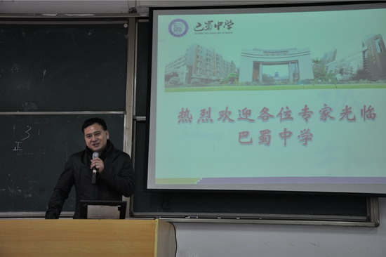 9:45~10:05 教科处谭中胜主任致欢迎辞并介绍巴蜀的校园文化