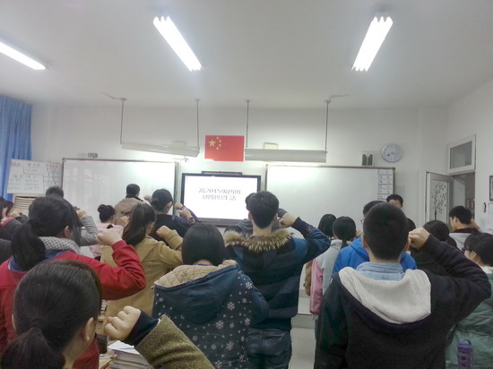 (巴蜀网 李潇珂)2013年12月9日下午第三节班会课,我校高2015级师生共同开展了以“铭记一二九,使命扛肩头”为主题的团组织生活。伴随着庄严的团歌,共青团员们面对着团旗与团徽作出自己作为一名共青团员的承诺,共青团的红色精神在每一间教室里激昂地飘扬着:革命的乐曲奏响,悲壮慷慨细数古今英雄豪杰、声情并茂的演讲,震动人心的宣誓,高昂的歌声此起彼伏。每一间教室都洋溢着满满的感动。虽然一节班会课只有短短的40分钟,但是留给我们广大团员青年们的却是无尽的思考。每一分钟都沉淀着厚重的历史感,我们在先烈铺设的光荣道路上奋勇前行…