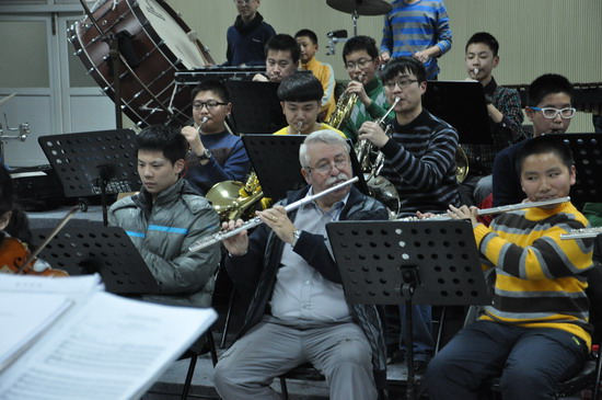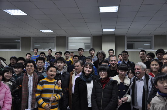 (巴蜀网  李加一)2013年12月27日傍晚,历史悠久的奥地利维也纳施特劳斯爱乐乐团的指挥及各声部首席来到重庆鲁能巴蜀中学参观并指导了我校管弦乐团的日常排练。
