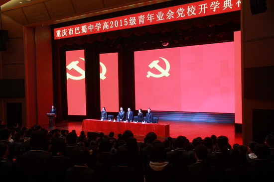 (高2015级 通讯员)2014年3月5日和3月11日,巴蜀中学高2015级学生青年党校开班典礼分别在鲁能校区L5O7和本部校区大礼堂隆重进行。巴蜀中学党委书记张勇、党委副书记吕之生、鲁能巴蜀中学党总支书记付英、党委办公室副主任潘琳、团委书记唐虢,以及高2015级年级领导小组成员教务处副主任舒小农、高2015级年级主任李潇珂、郑元出席了本次开学典礼。