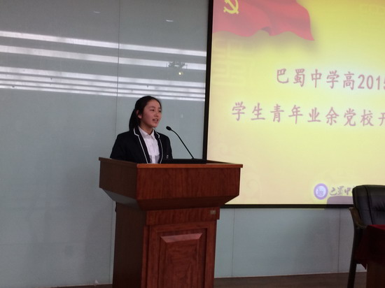 接下来,鲁能巴蜀中学党支部书记付英同志为各位同学提出了具体要求,要求各优秀团员提高认知,坚定不变信念;以党员标准要求自己,提供模范作用;遵守党的纪律、制度,学习党课时坚持‘’三到‘’原则;努力学习探索,把学生的主要人物放在首要位置。付英书记认为,现在的一切付出都会成为一种沉淀,为我们今后的人生打下坚实的基础。