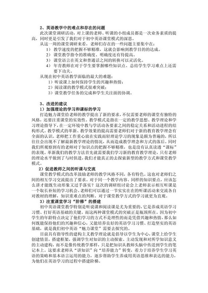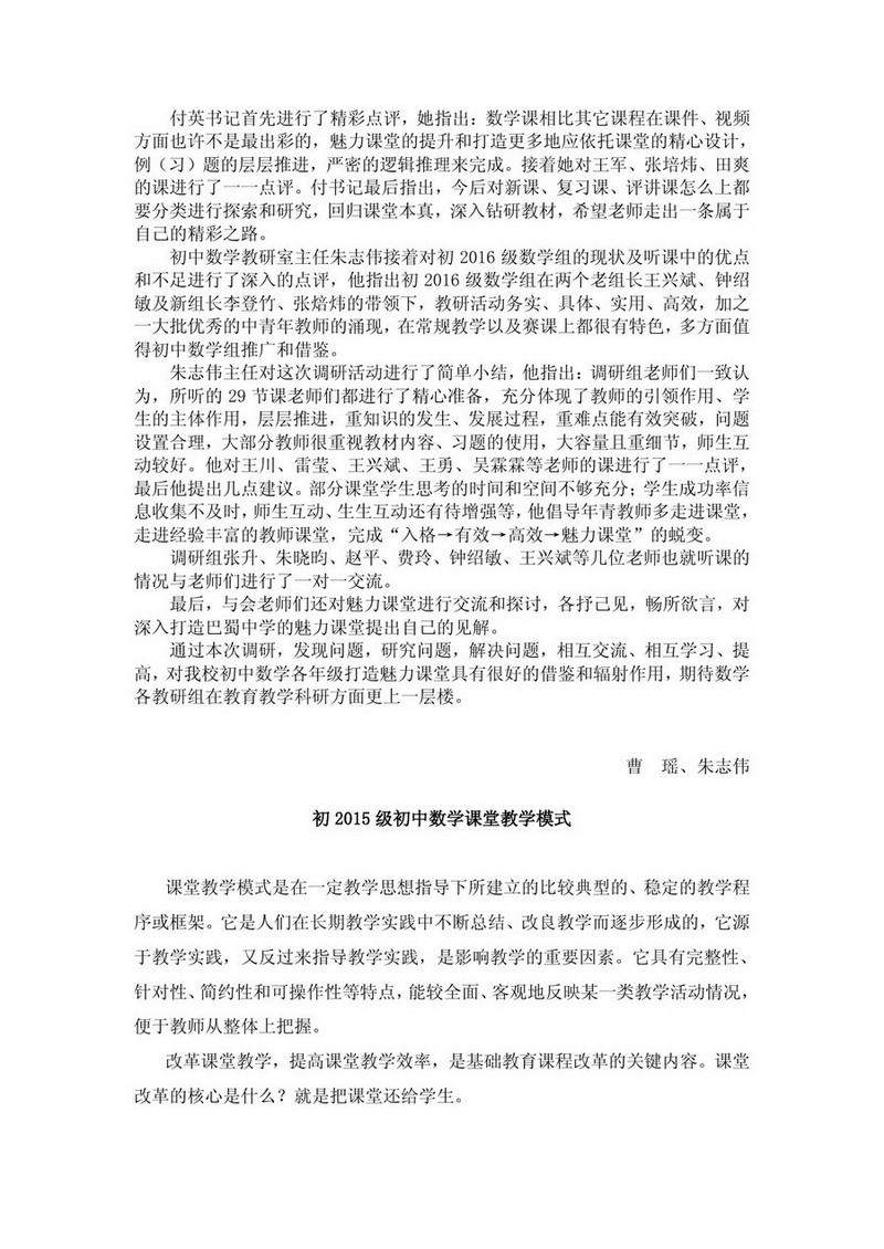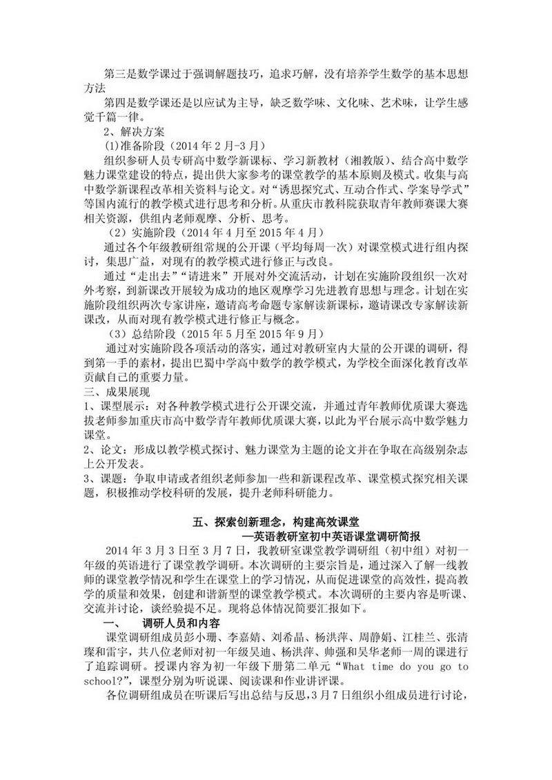 现学校将各学科的课堂调研报告和部分学科的教学模式探究报告整理汇总,请全校教师相互学习,交流。