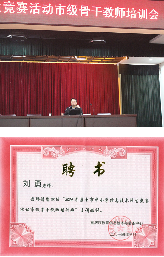 为了提高我市广大教师参加全国信息技术类竞赛水平,重庆市教育信息技术与装备管理中心举行了2014年度全市中小学信息技术竞赛活动市级骨干教师培训班。