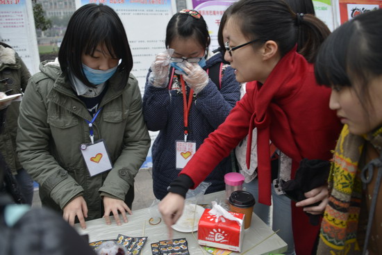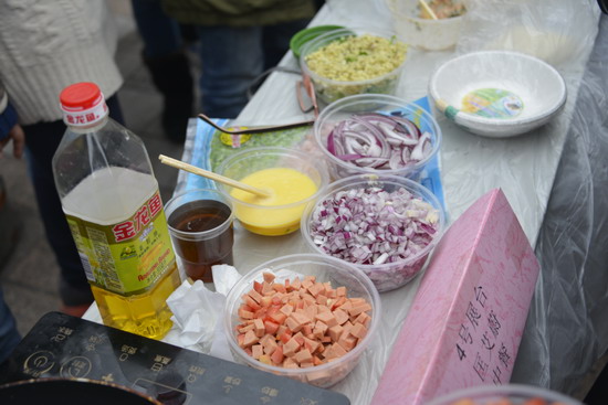 为了确保首届美食节的顺利开展,社联工作人员和味蕾社成员在前期做了充分有序的准备。与展台负责人接洽后,考虑到场地规划的合理性,安排了位于景观大道两侧的展台顺序。食品安全卫生方面也给予了足够的重视,工作人员对每一家展台的食物做了抽样调查并在活动开始前给每个展台配发了桌布、卫生纸、口罩、手套和卫生筷等,在服务台还设置了医疗急救箱,有专人负责。活动工作小组各司其责,井然有序并在活动结束后对场地进行了清扫和整理。