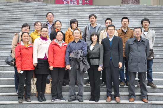 (巴蜀网 朱华英)11月2日上午,来自河南南郑州的化学名师工作室来我校参观考察。9点左右,课程改革处张学忠主任在行政楼办公室一楼会议室接待了工作室的老师们,并就学校的校本课程建设和名师工作室建设向来宾进行了介绍,来宾们对我校的“131”校本课程体系和财商教育高度评价,纷纷索取我校由重庆出版社出版的校本财商教材《影响中学生财商的26堂课》。