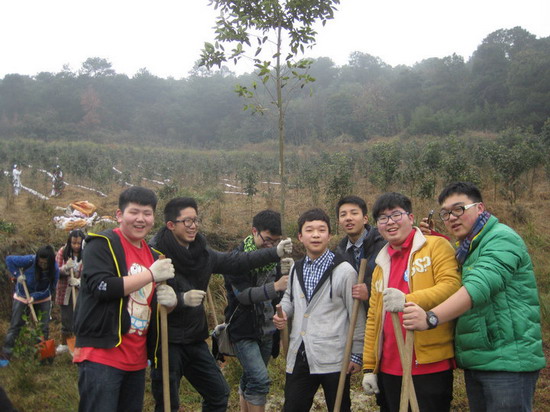 2. 2012年3月10日,重庆学生义工协会组织了第一次的活动,一次植树的活动。虽然天飘着小雨,但是依然无法阻挡学生们的植树热情。