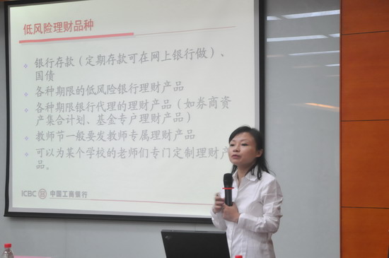 培训会下午2:30,由重庆市工商银行理财专家、国际金融理财师田晖做《财商是人生中重要的一部分》专题讲座。田老师从财商教育的困惑入手,结合自身的经验就投资理财给老师们提出了可行的方案,老师们都反映讲座专业性强,信息量大,感觉收获颇多。