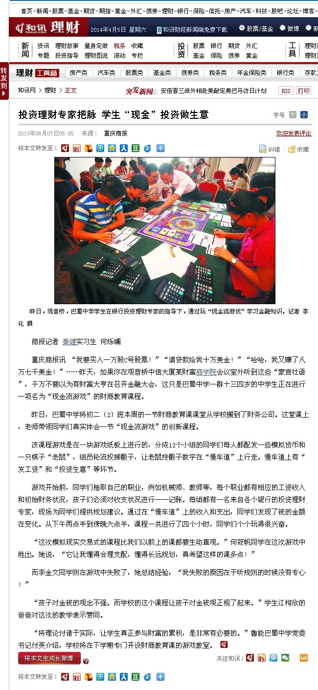 凤凰网:“财商教育”进课堂 教中学生炒股
