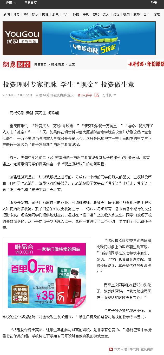 网易财经:投资理财专家把脉 学生“现金”投资做生意