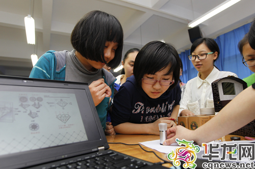 今天下午,鲁能巴蜀中学高一的学生近距离观察宝石。 首席记者 李靖 摄