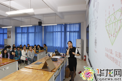课堂上,老师为学生讲解钻石的切割。 首席记者 李靖 摄
