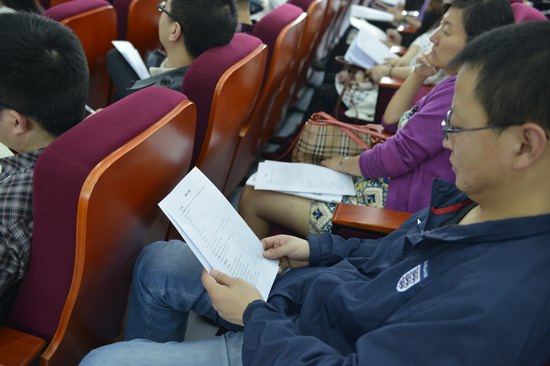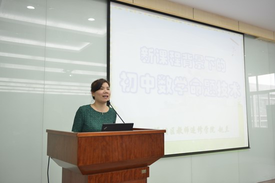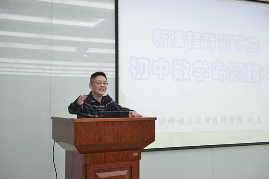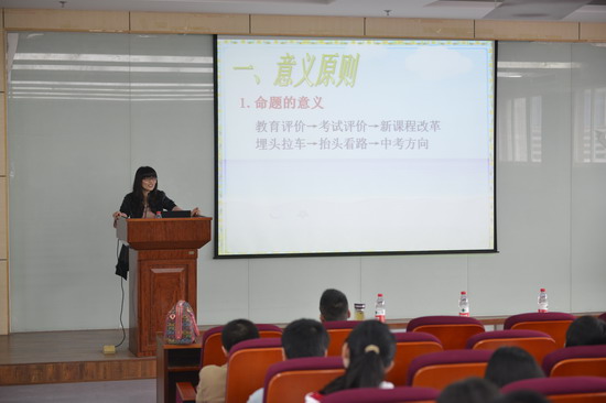 付英书记首先对赵专家的莅临指导表示欢迎和感谢,并对新课程背景下初中数学命题技术的重要性作了详尽的阐述。同时也代表学校对数学教师的专业发展提出了要求和希望,尤其是在数学的命题上与时俱进,开拓创新,希望各位数学组同仁,通过不断的学习和研究,进而提高自身的专业素养。